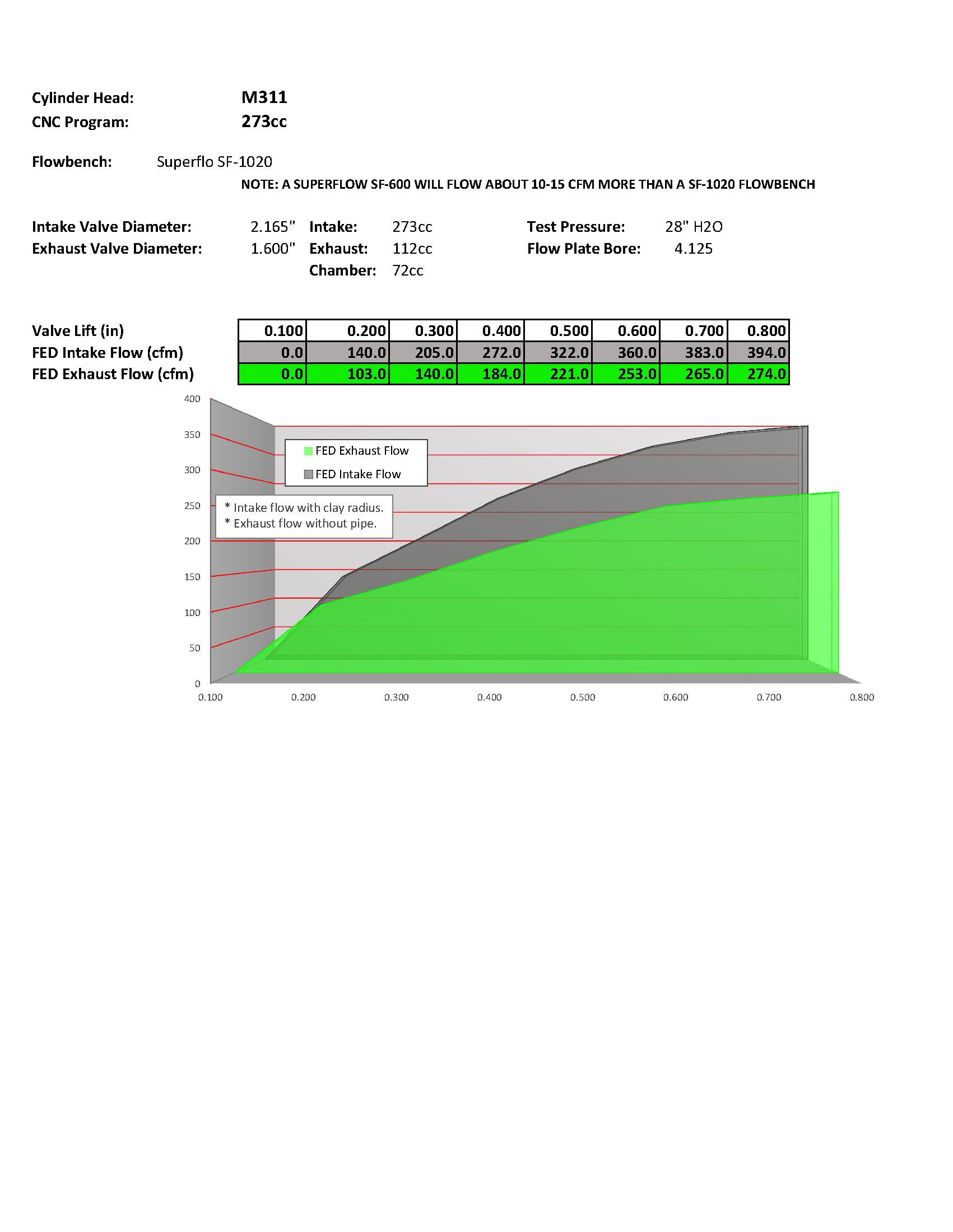 - 273cc intake port, 112cc exhaust port and 11° valve angle